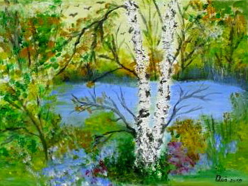 Auf dem einen können Sie eine kleine Auswahl selbstgemalter Bilder besichtigen – und auch kaufen …